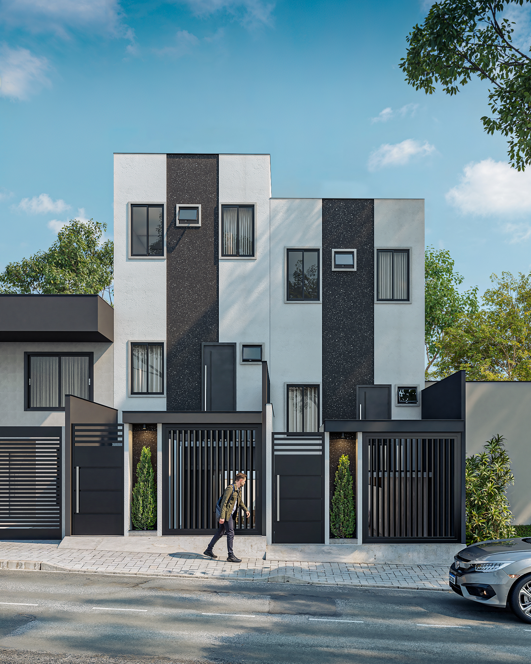 Sobrados projetados para conforto térmico, iluminação natural e baixa manutenção.